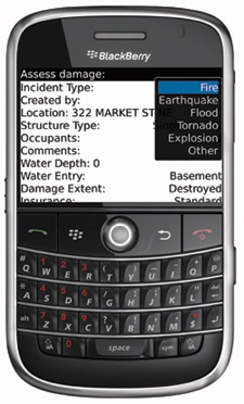 Using Buzz, first responders have the ability to quickly access detailed information about resource availability and critical infrastructure. Developed to utilize the ESRI ArcGIS Server technology, Buzz allows the user to locate crews and verify the status of safety sites such as shelters and hospitals. Buzz is also equipped with photo capture functionality, allowing the first responder to take a photo with the Blackberry